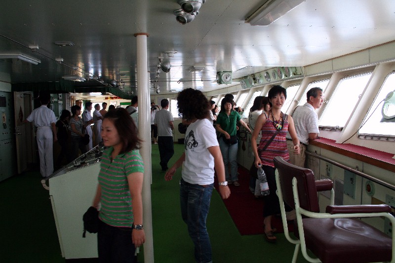 30名ほど集まった乗客は女性乗務員の先導でブリッジに向かう。